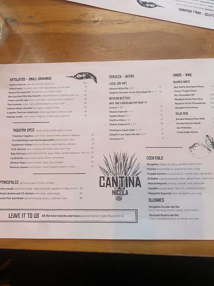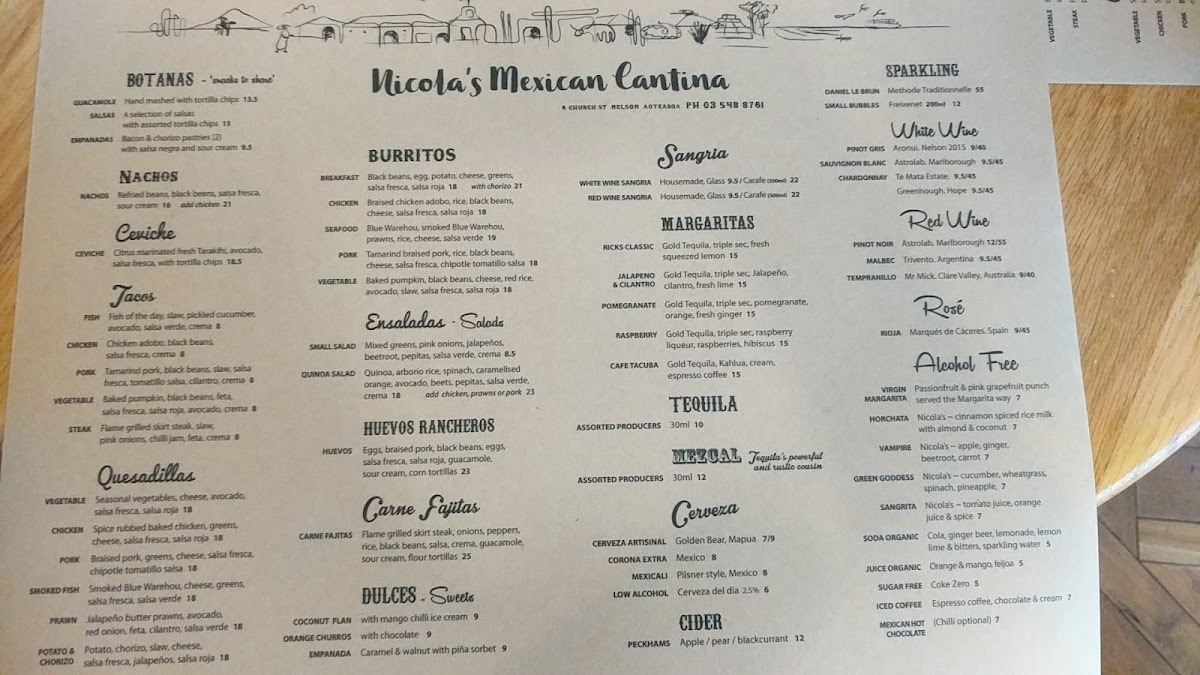 Cantina Nicola’s menu at 6 Church Street, Nelson, offers a vibrant blend of flavors that cater to both traditional and adventurous tastes. The breakfast selection shines with Huevos Rancheros, perfectly spiced and generously portioned, alongside the indulgent Tequila and Tacos for Breakfast, which brings a playful twist to the morning meal. For those seeking plant-based options, the Vegetarian Burrito and Vegan Vegetable Burrito stand out, each bursting with fresh ingredients and hearty fillings that satisfy without compromise. Complementing these dishes is the lively Sangrita, a refreshing drink that pairs beautifully with the menu’s bold flavors. Each offering reflects Cantina Nicola’s commitment to quality, creativity, and a touch of indulgence, making it a must-visit for anyone looking to enjoy a dynamic and flavorful dining experience.